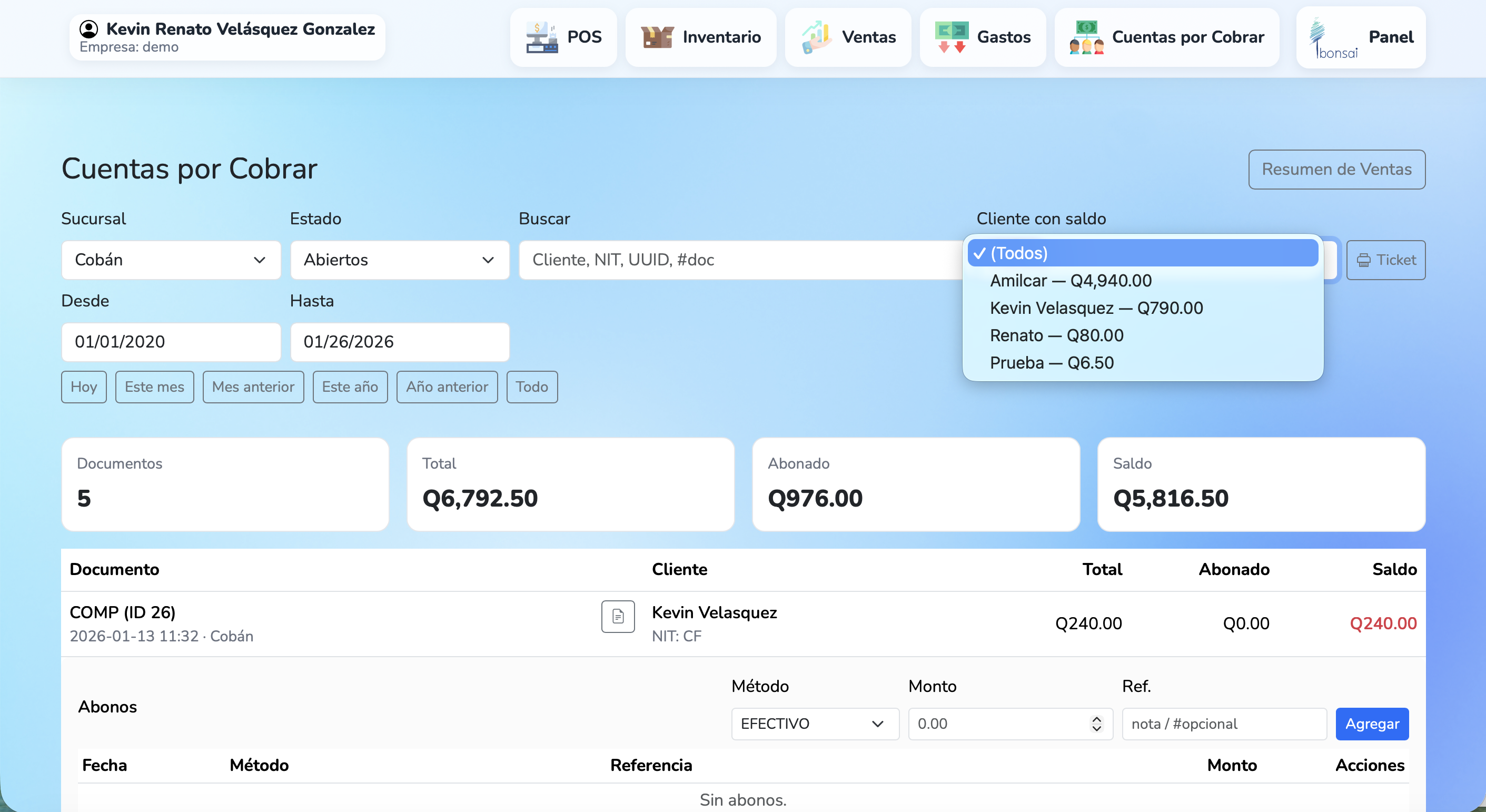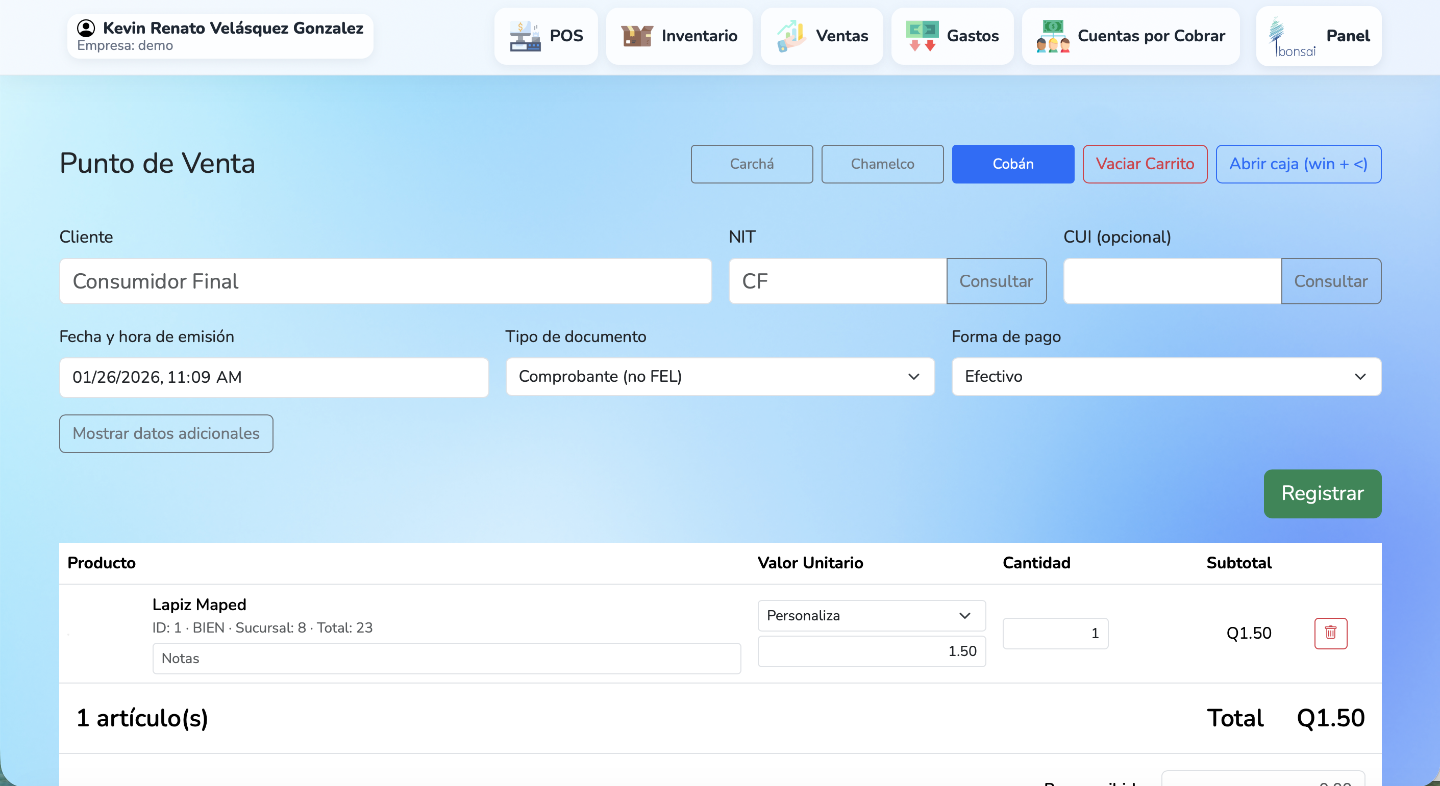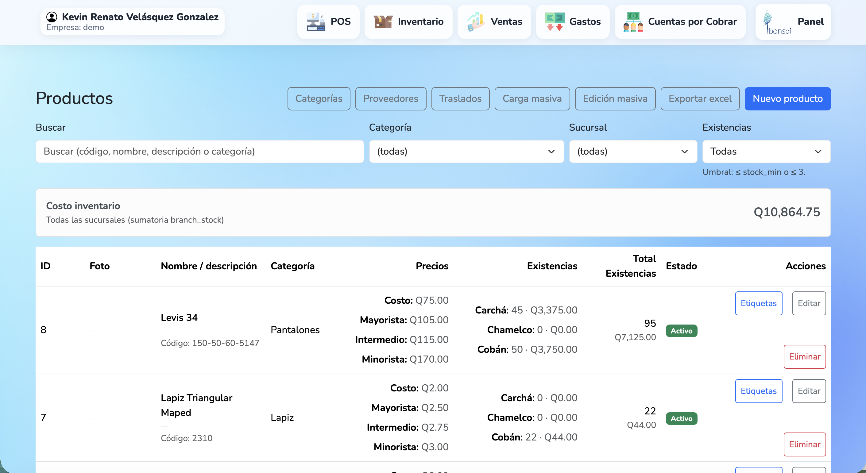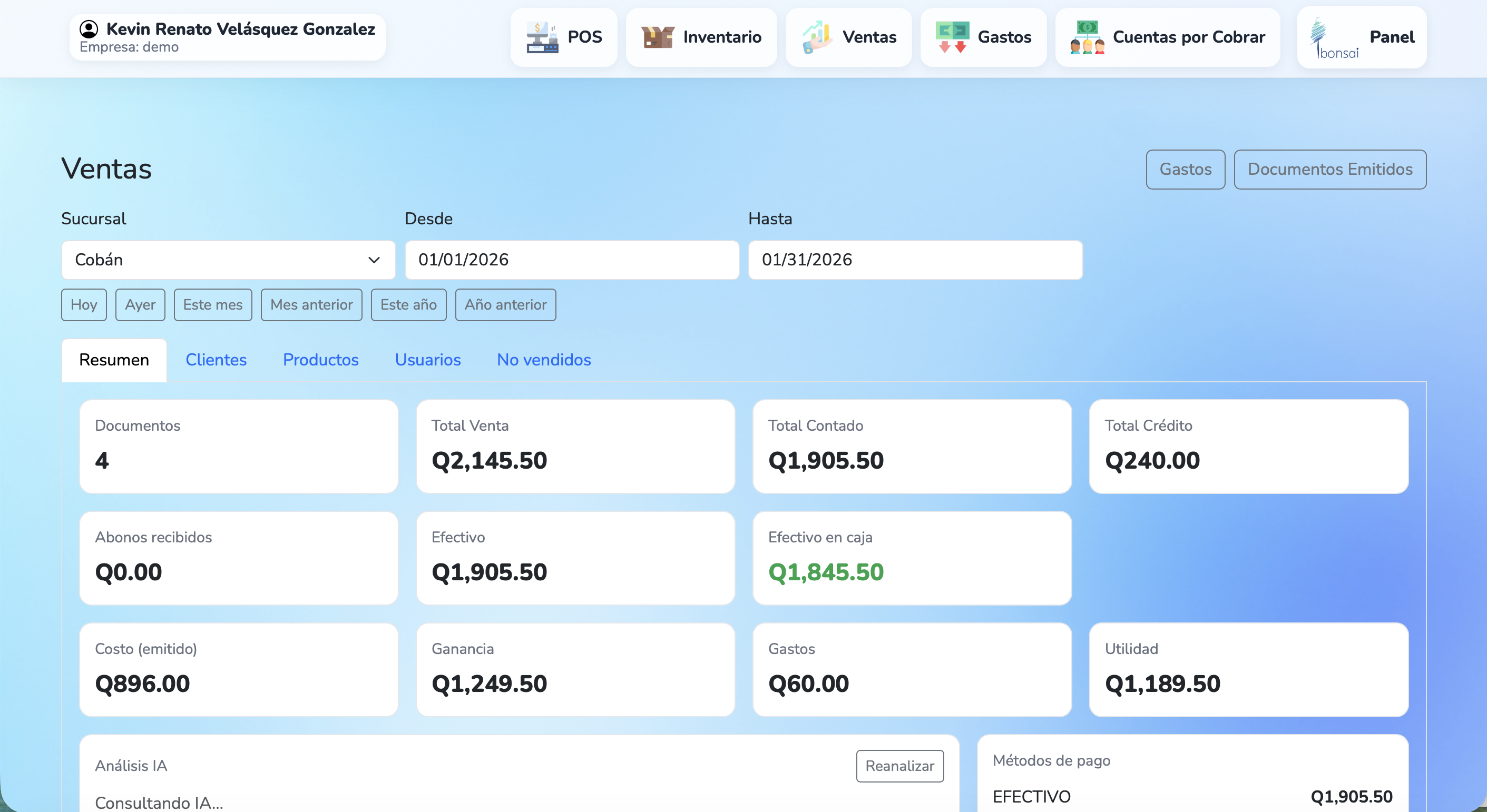Este sistema está pensado para empresas que necesitan control total, ya sea en puntos de venta o en campo, con múltiples usuarios, sucursales y procesos avanzados.
